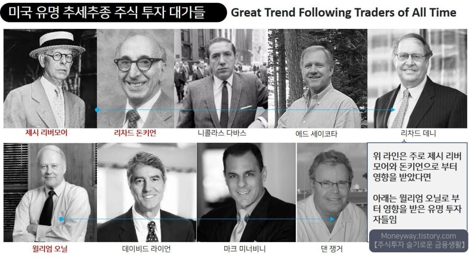 주식 투자 공부 과정에서 주식 투자와 매매기법을 나름대로 완성하는데 아주 큰 도움을 준 사람들은 대개는 미국 유명 추세추종 투자자들의 책을 통해서였습니다.
