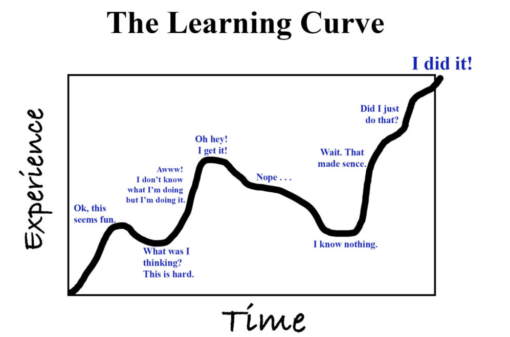 그렇게 포지하지 않고 지속해서 노력을 해 나가다 보면 학습 곡선에서 보듯이 실력은 점점 더 우상향 하듯 발전하게 됩니다.